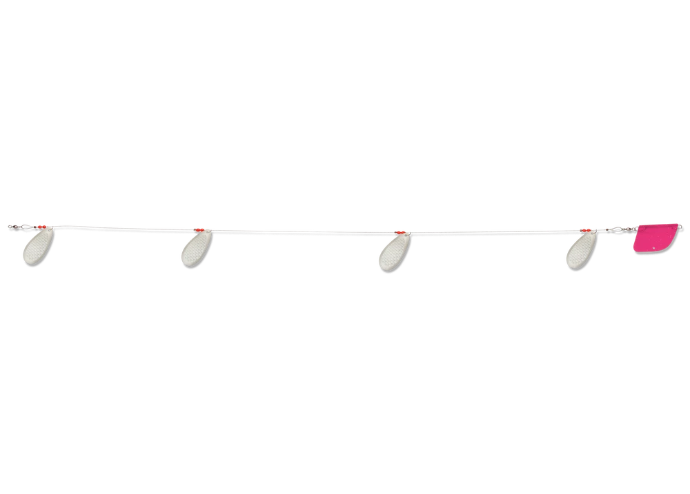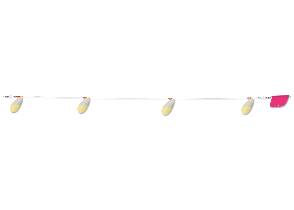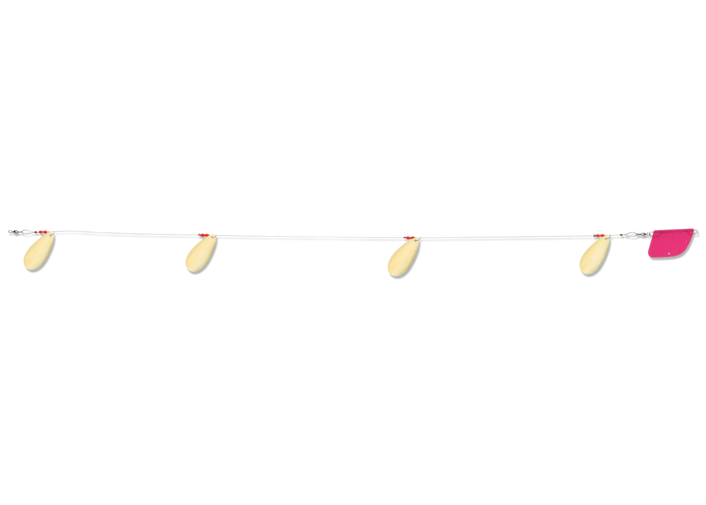 The Cowbell is one of Luhr-Jensen’s most popular lake trolls and is known by anglers all around globe for its productivity. The Cowbell’s unique blade design produces an awesome fish-calling vibration, while Luhr-Jensen premium plating and polishing of the blades offers maximum underwater flash. You’re able draw fish from greater distance, and produce more strikes with Cowbell trolls in your spread. The Luhr-Jensen Cowbell Lake Troll comes completely rigged with 38 inch flexible cable rigging, trolling rudder, and four #4 blades. And with over 10 proven finishes, you’ll be sure to maximize success on your local waters.