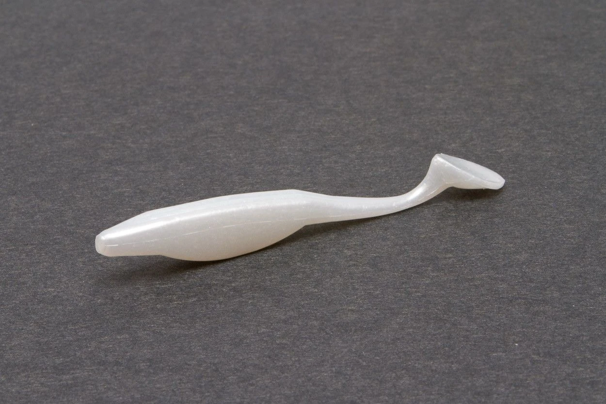 All of the great characteristics of the original Super Fluke, now with a hard-pounding paddle tail and in a downsized package. You can fish it like its predecessor, with a swoop and glide motion, or wind it steadily and feel it pulse like a spinnerbait. It’s great by itself or on the back of a swim jig or vibrating jig, where it calls fish from a distance with its sizable acoustic footprint. The Jr., can also be used on back of a fish head spin or under spin style bait.